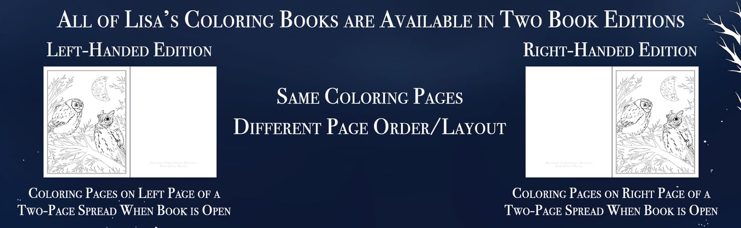 - A Left-handed Edition features the same coloring pages on the left page when the book is opened to two pages.